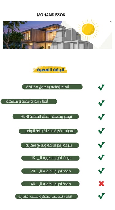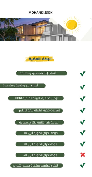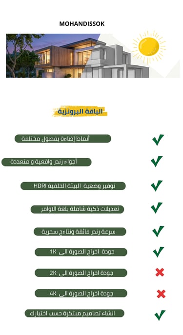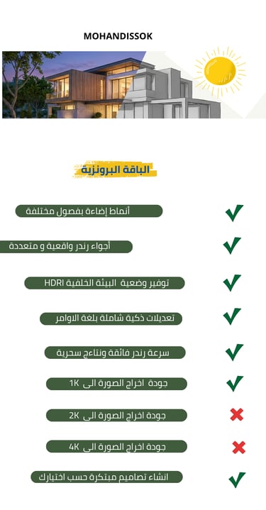 نوفر تنسيقاً فريداً للحدائق والمساحات الخارجية والداخلية بالأسلوب الذي تختاره. نقديم إخراج معماري (رندر) احترافي بضغطة زر واحدة، حيث ندمج بين الكفاءة العالية والتكلفة المنخفضة لتنفيذ الرؤى المعمارية بدقة متناهية.